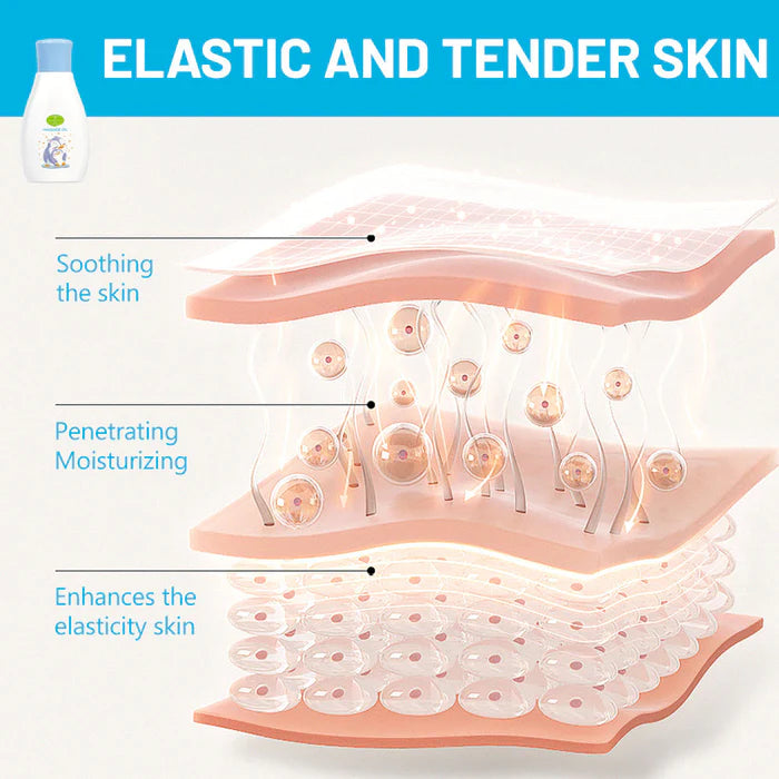 The Aichun Beauty Baby Massage Oil absorbs quickly without leaving a greasy residue, leaving the skin silky, smooth, and hydrated. Its hypoallergenic and paraben-free formula is safe for newborns, infants, and toddlers, making it ideal for daily baby care routines.