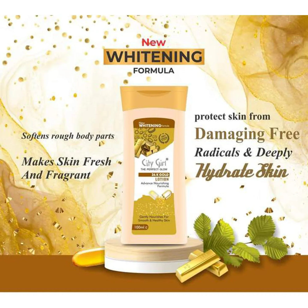 Elevate your skincare routine with this luxurious moisturizing lotion enriched with 24‑karat gold dust. The City Girl 24K Gold Moisturizing Lotion delivers deep hydration while imparting a radiant, luminous glow. Its lightweight, non‑greasy finish absorbs quickly, leaving skin feeling soft, smooth and revitalised—perfect for daily use on face and body.