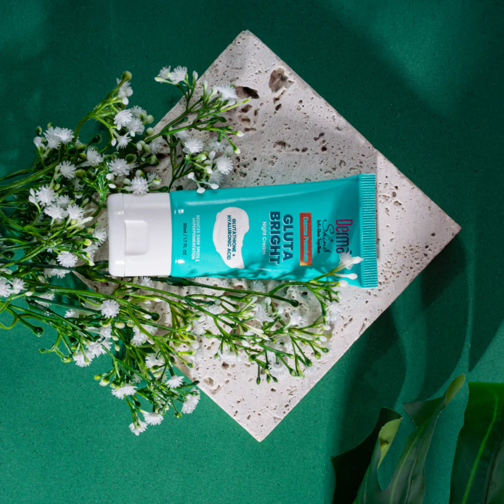 Derma Shine Premium Gluta Bright Night Cream (50ml) is a specialized nighttime skincare product formulated to brighten and rejuvenate the skin while you sleep. Infused with potent ingredients like Glutathione and Hyaluronic Acid, it aims to address common skin concerns such as uneven skin tone, dark spots, and enlarged pores.