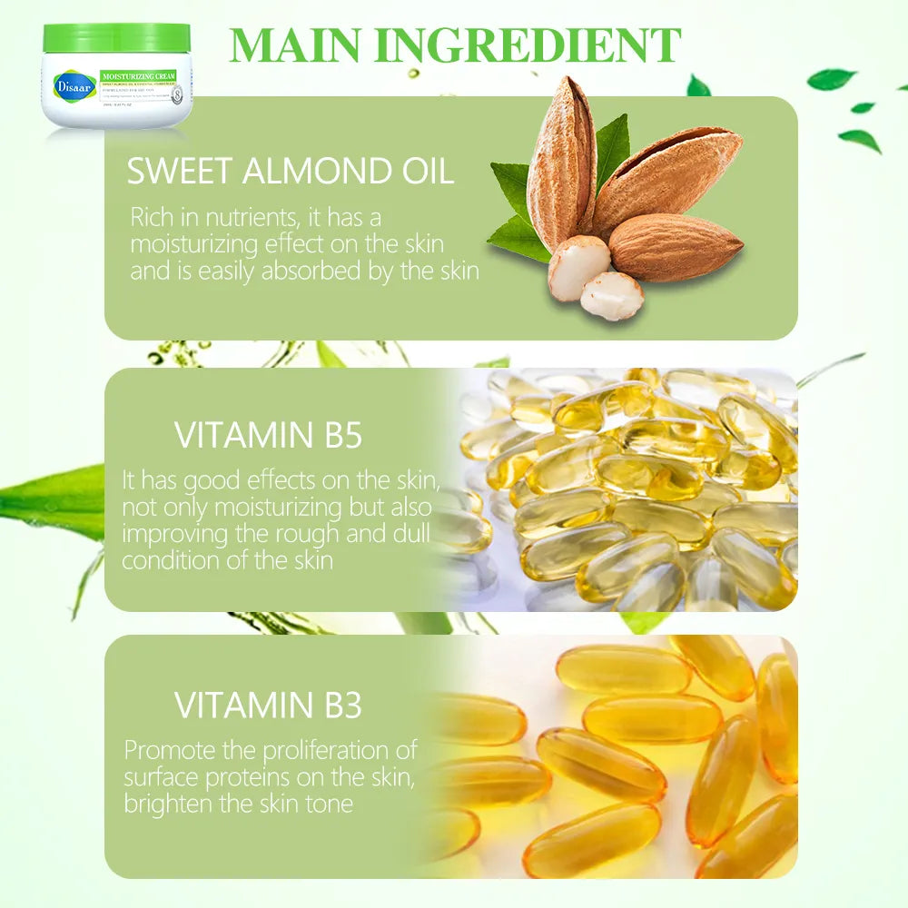 A rich yet absorbent body and face cream infused with nourishing ingredients like sweet almond oil, vitamins B5/B3, and sometimes variant-specific actives (e.g., snail extract, avocado, honey, aloe vera, cocoa) depending on the version sold.