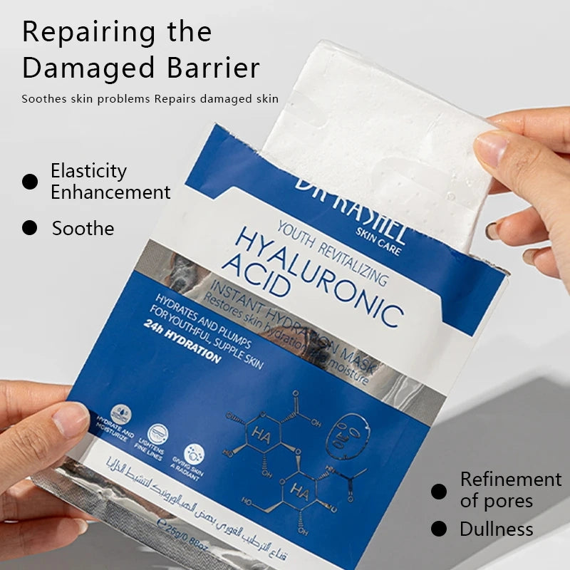 Dr Rashel Youth Revitalizing Hyaluronic Acid Mask is a deeply hydrating sheet mask formulated with Hyaluronic Acid to boost skin moisture, plump fine lines, and restore youthful radiance. This 25g single-use mask penetrates the skin to improve elasticity, smooth texture, and leave your face looking fresh, revitalized, and glowing. Ideal for all skin types, especially dry, dull, or aging skin.