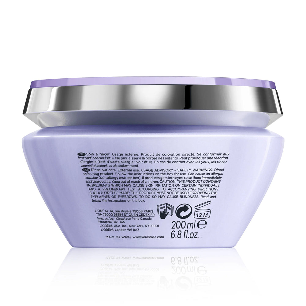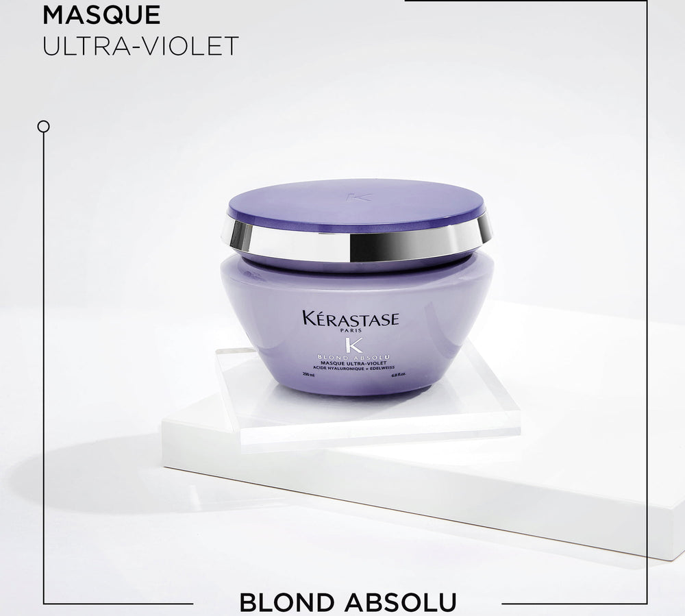 Kérastase Blond Absolu Masque Ultra-Violet 200ml is a premium hair treatment designed specifically for lightened, blonde, or gray hair. This mask neutralizes unwanted yellow and brassy tones, restoring a cooler, luminous blonde while deeply nourishing and strengthening the hair.