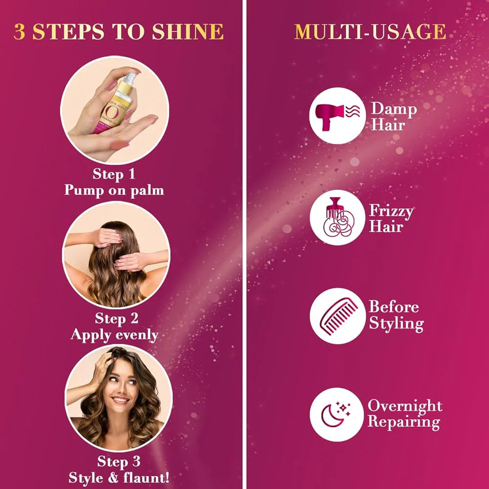 The 100ml bottle provides deep nourishment, leaving your hair feeling soft, silky, and manageable while reducing frizz. Suitable for all hair types, it helps improve hair texture, providing protection from heat and environmental damage. The non-greasy, lightweight formula ensures long-lasting moisture without weighing hair down.