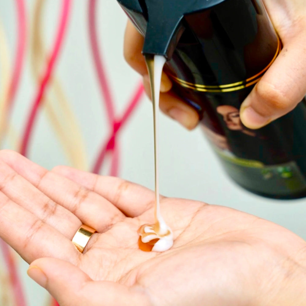 Apply the LUVVEL Hair Color Shampoo to wet hair.