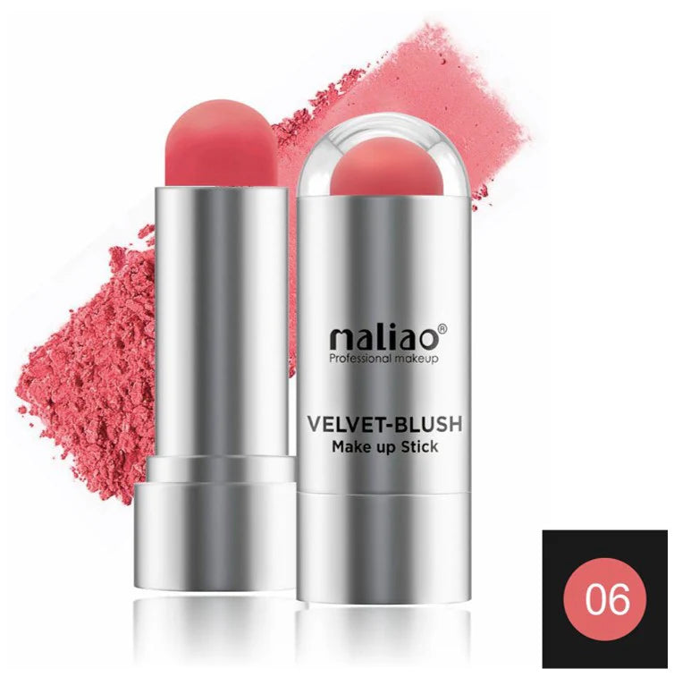 Introducing the Maliao Velvet Blush Stick, your go-to for a flawless and long-lasting blush. Its velvety formula glides on smoothly and evenly for a natural and radiant look. Made with high-quality ingredients, this blush stick is a must-have for any makeup lover. Enhance your beauty with Maliao!