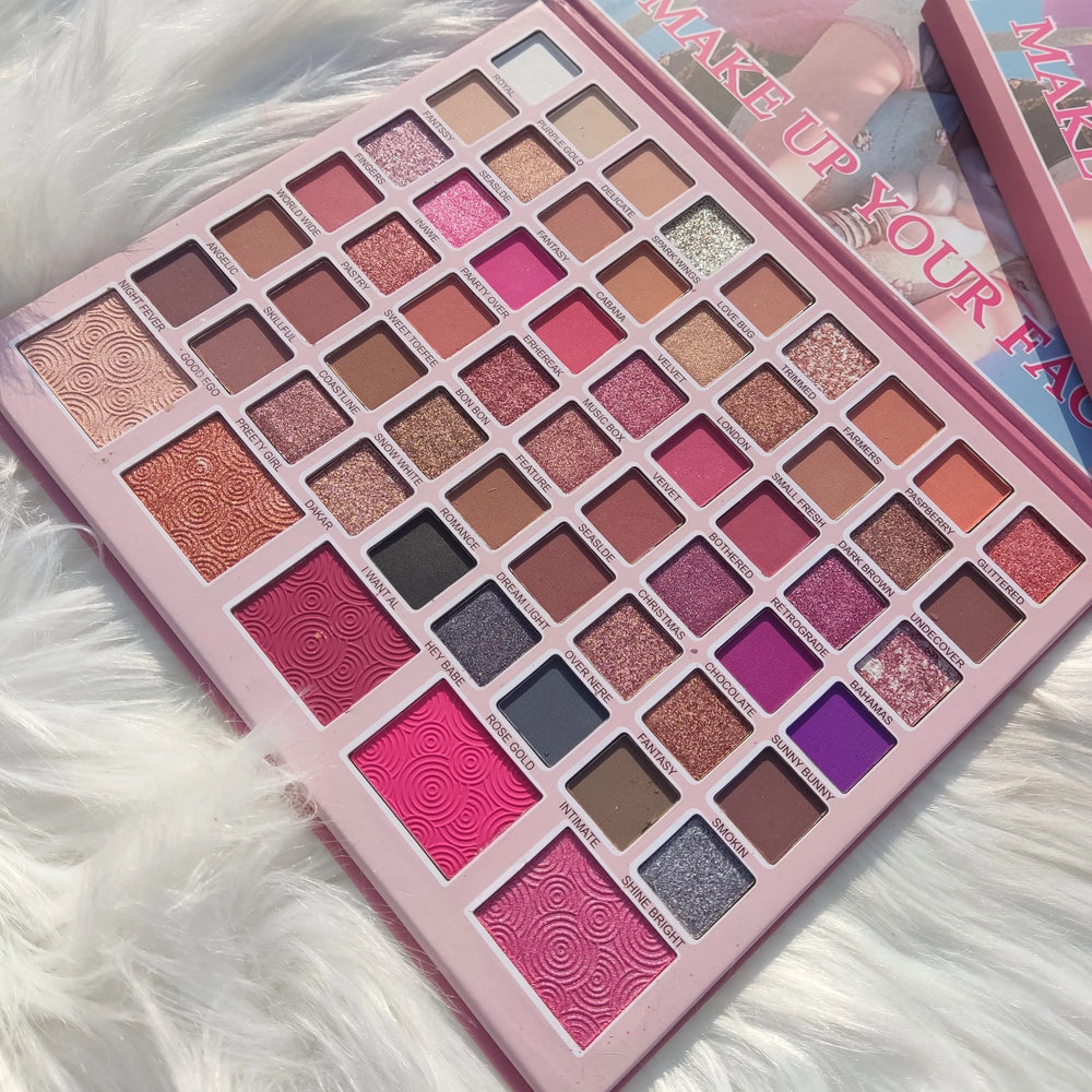 Unleash your creativity with the Naked Flower "Make Up Your Face" 59 Shades Eyeshadow Palette – a luxurious, all-in-one collection of richly pigmented shades that lets you express every mood, look, and style. From soft neutrals and romantic pinks to bold brights and dazzling metallics, this palette is a dream for makeup lovers and professionals alike.
