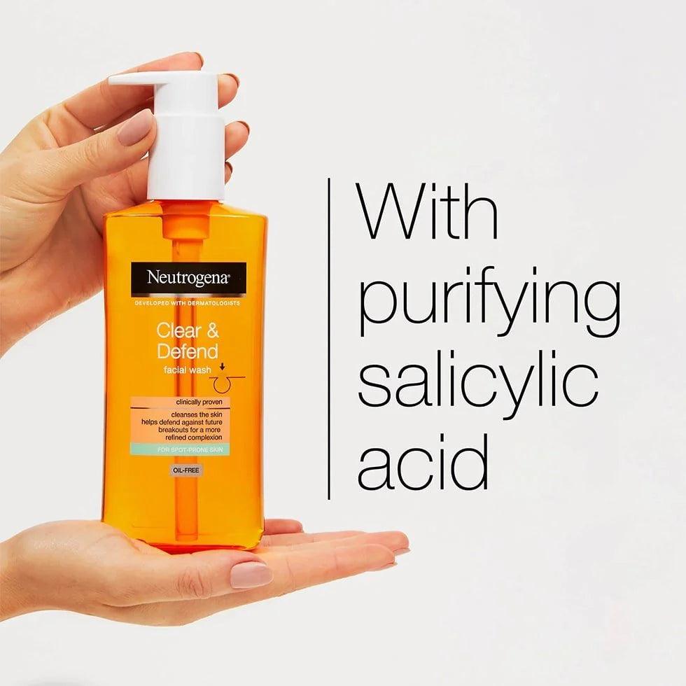 Neutrogena Clear & Defend Facial Wash is a dermatologist-recommended cleanser designed to help fight breakouts from day one. Formulated with salicylic acid, it deeply cleans pores, removes excess oil, and prevents future blemishes without over-drying your skin. Its gentle, oil-free formula is suitable for daily use and ideal for acne-prone skin.