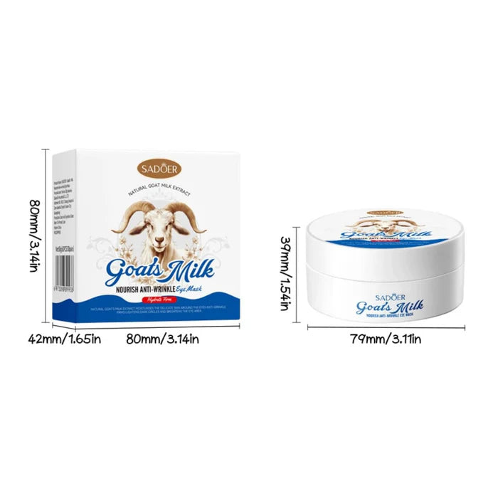 Revitalize tired eyes with the SADOER Goat Milk Moisturizing & Whitening Eye Mask, enriched with natural goat milk extract for intense hydration and brightening care. This nourishing formula helps reduce dark circles, puffiness, and fine lines while restoring a fresh, youthful look to your delicate under-eye area.