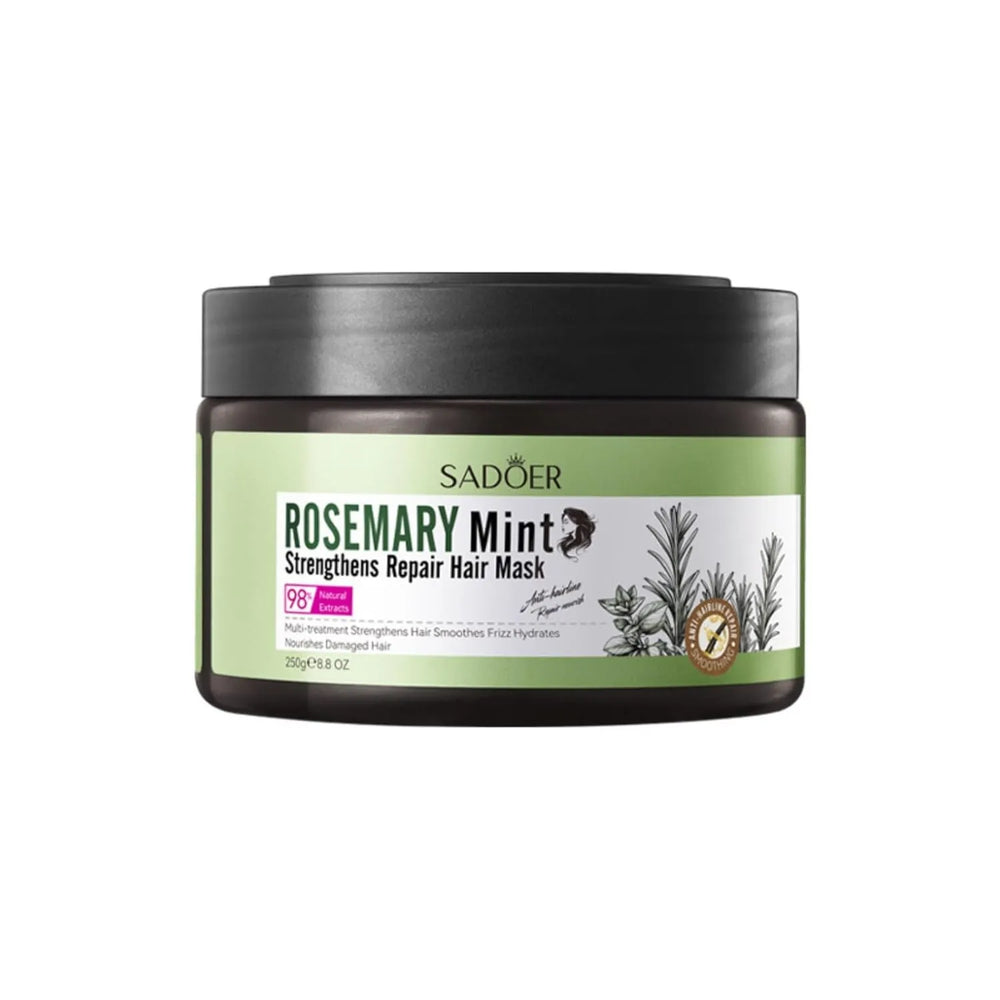 Sadoer Rosemary Mint Hair Mask is a nutrient-rich, deep conditioning treatment specially formulated to strengthen weak hair, stimulate growth, and repair damage from root to tip. Infused with rosemary and mint extracts, it improves scalp circulation, reduces hair fall, and restores moisture while leaving your hair feeling refreshed, soft, and manageable. Perfect for dry, damaged, thinning, or chemically-treated hair.