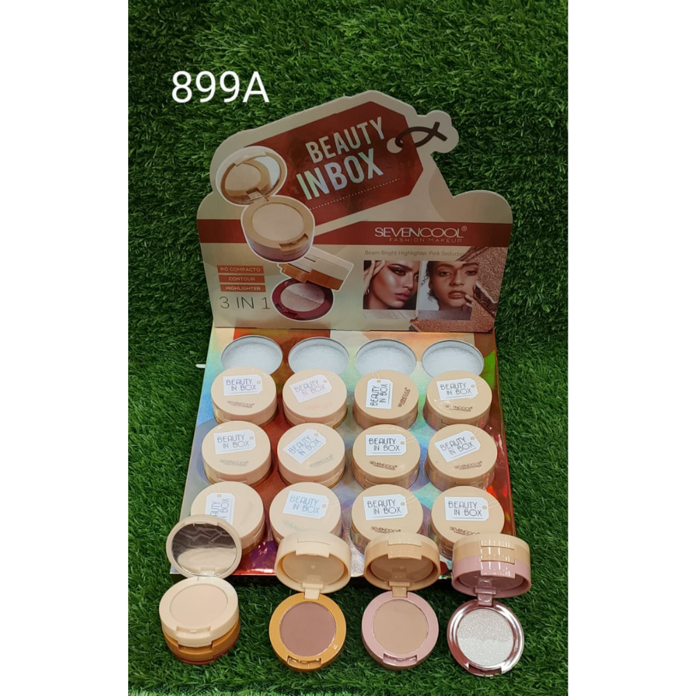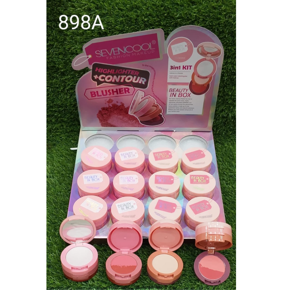 The SevenCool 3-in-1 Highlighter is a versatile makeup product designed to enhance your complexion with a radiant glow. This compact palette combines three shimmering shades—typically a white, pink, and gold—allowing you to customize your highlight to suit various occasions and skin tones.