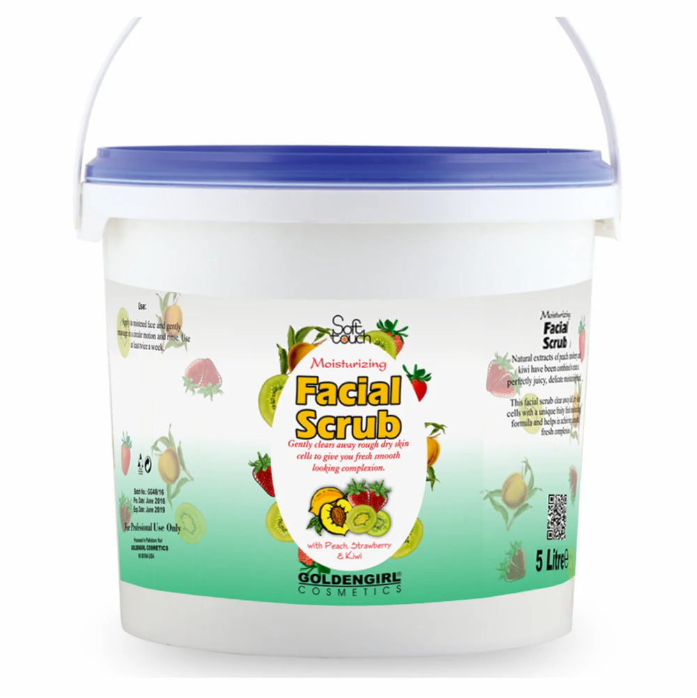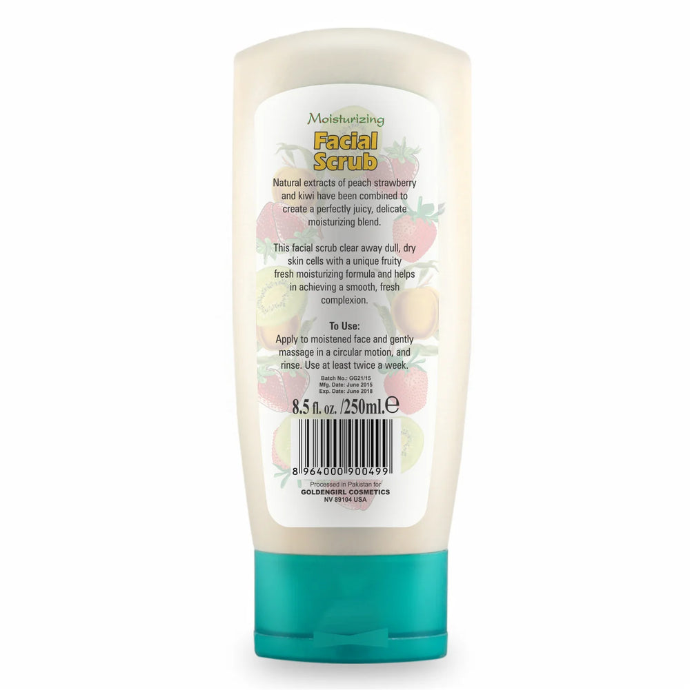 Moisturizing Facial Scrub by Soft Touch Golden Girl, natural extracts of Peach, Strawberry, and Kiwi have been combined to create a perfect delicate moisturizing blend. Moisturizing facial scrub gently clears away dull, dry skin cells with a unique fruity fresh moisturizing formula to provide you a fresh smooth looking complexion.