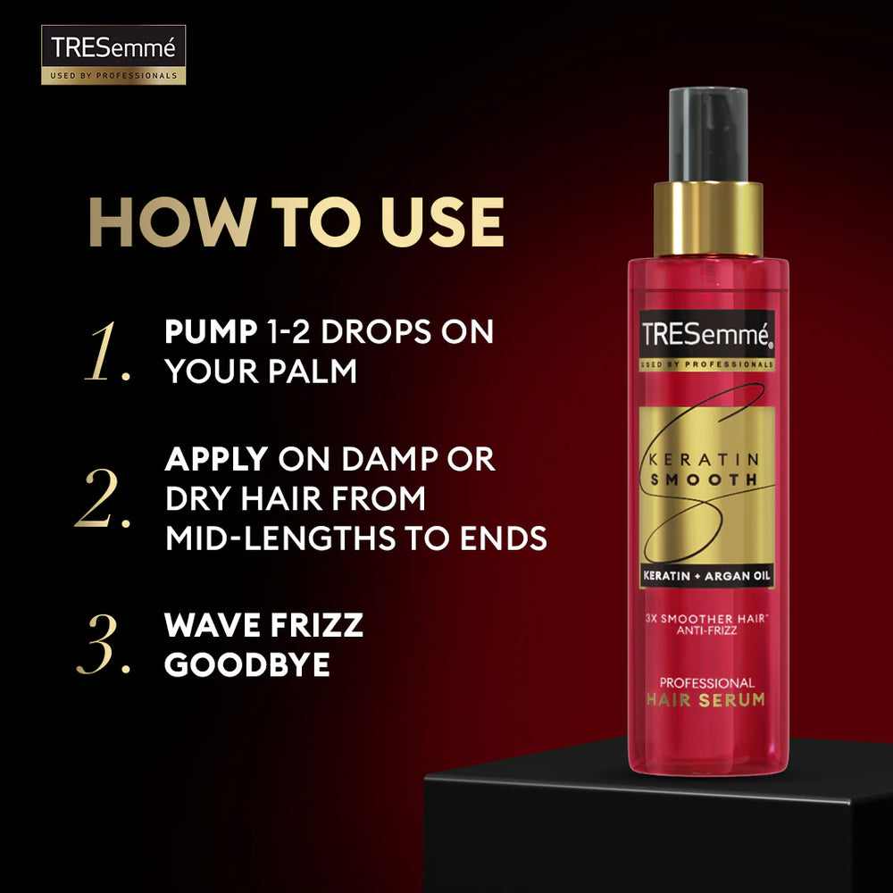The TRESemmé Keratin Smooth Shine 5-in-1 Hair Serum (100ml) is a professional-grade styling solution designed to provide multiple benefits for your hair. Infused with keratin and marula oil, this serum aims to deliver 5 smoothing benefits: fights frizz, detangles knots, boosts shine, adds softness, and tames flyaways. Its lightweight formula ensures that your hair remains smooth and manageable without feeling greasy or weighed down. Suitable for all hair types, this serum is especially beneficial for those seeking a sleek and polished look.