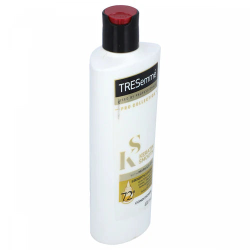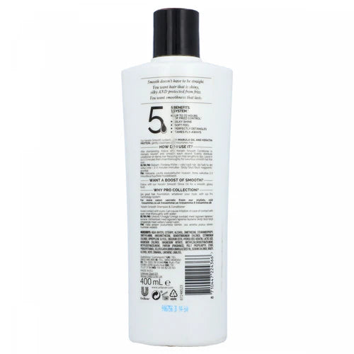 The TRESemmé Keratin Smooth Pro Collection Conditioner (400ml) is a salon-quality formula designed to deliver up to 72 hours of frizz control, leaving your hair silky, smooth, and full of natural movement. Infused with Keratin and Argan Oil, this conditioner nourishes each strand, helping to detangle knots, boost shine, add softness, and tame flyaways. It's suitable for all hair types and is especially beneficial for those with frizz-prone or dry hair.