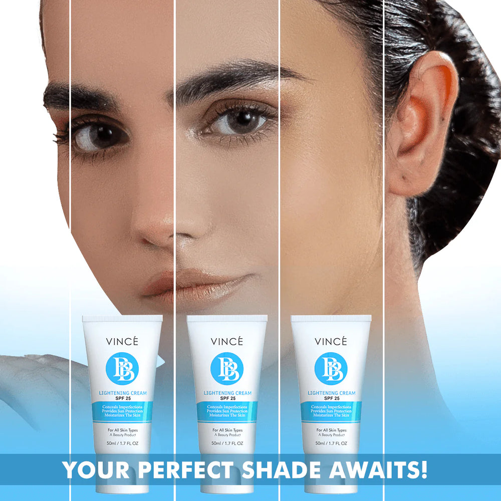 Take a small amount of Vince BB Cream & apply it with your fingers or blender, and blend until the shade has transformed to match your skin’s tone.