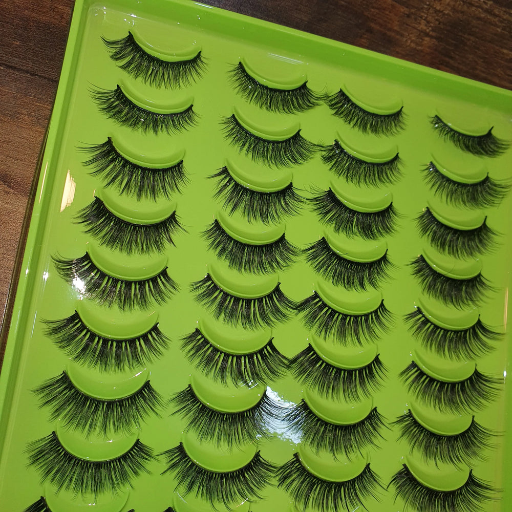 Expertly handcrafted with 100% real human hair, these 20 pairs of lashes offer a heavy, full look with a simple, natural appearance. Achieve a dramatic yet elegant look with these super handmade lashes.