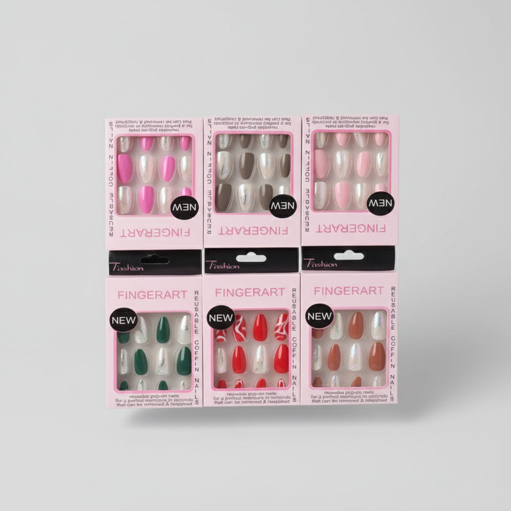 Artificial nails: Made from lightweight, durable material designed to mimic natural nails while offering a polished finish.