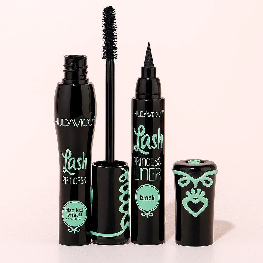 Elevate your eye game with the HudaMoji Princess 2-in-1 Mascara and Black Liner Pack—because every princess deserves eyes that captivate