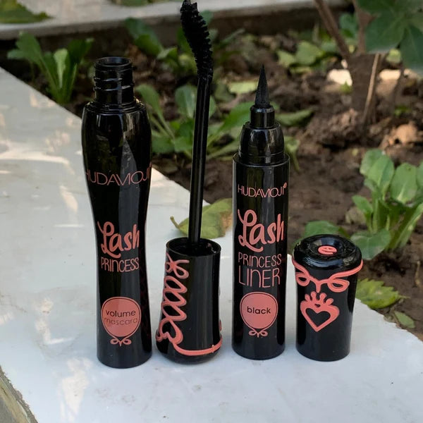 Elevate your eye game with the HudaMoji Princess 2-in-1 Mascara and Black Liner Pack—because every princess deserves eyes that captivate