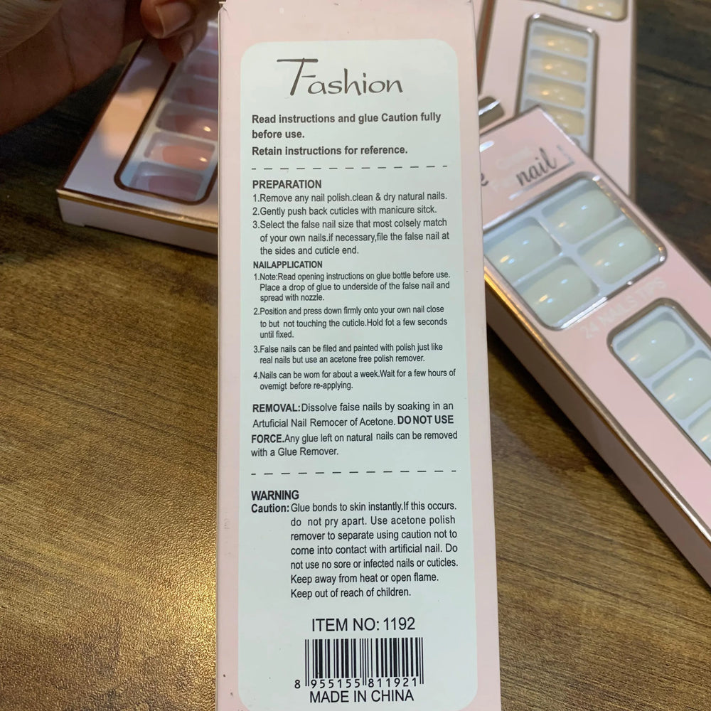 Sizing: The artificial nails are typically available in various sizes to accommodate different nail shapes and widths. This ensures a more customized fit for a natural-looking appearance.