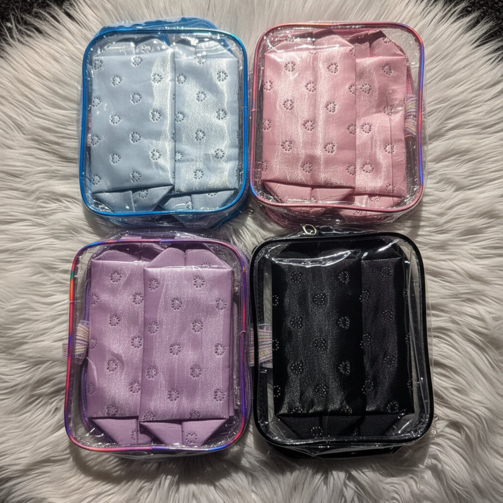 The Small (The "Touch-Up" Pouch): Designed for your handbag. Perfect for your 3Q Beauty Matte Lip Gloss, a travel-sized perfume, and hair ties.