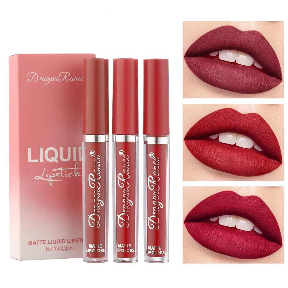 Enhance your pout with the 3 Pcs Dragon Ranee Matte Lipgloss Set. The perfect combination of vibrant color and a matte finish, this set will give you a flawless and long-lasting lip look. With three shades to choose from, you can easily create a bold or natural look. Give your lips the attention they deserve with this must-have set.