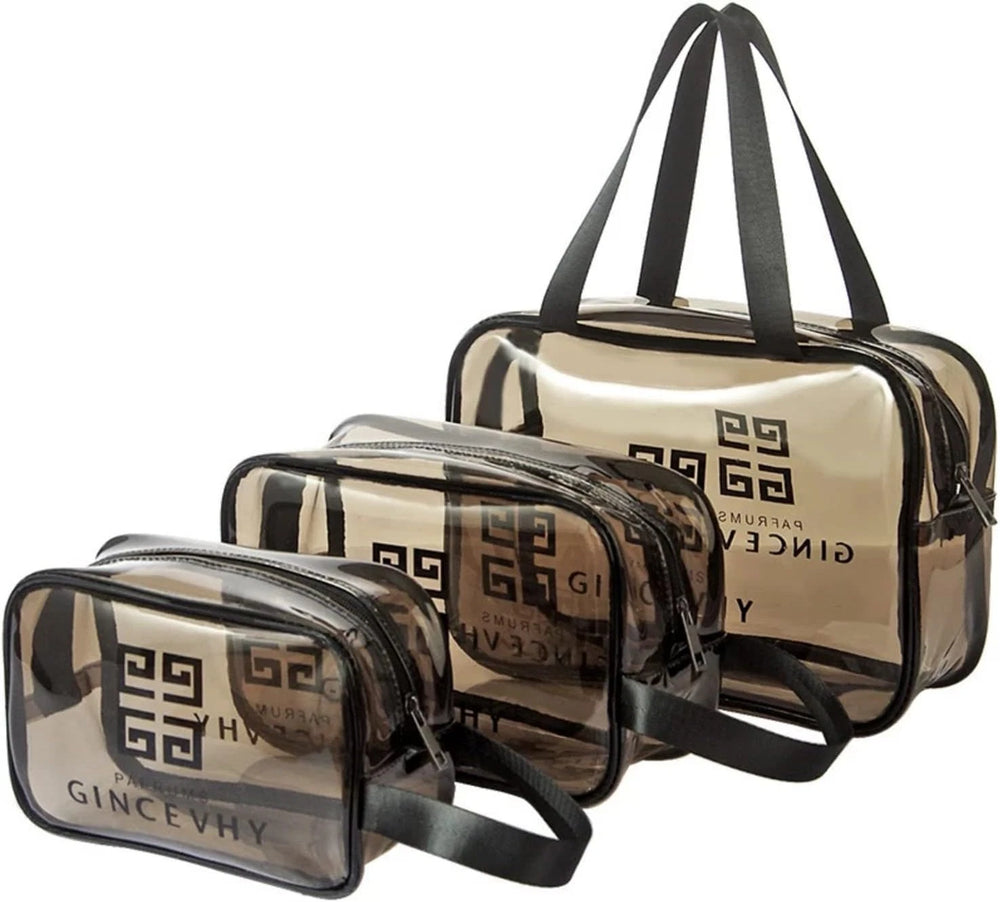 An ideal transparent cosmetic bag in travel, toiletry bag to the gym, bathroom organization, everyday carry use bag and carry on luggage.(NOTE: other things in bags are NOT INCLUDED!)