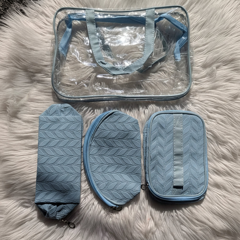 The XL Clear Trunk: The "Command Center." This holds the other three bags or acts as a waterproof home for your Gegemoon 500g Hair Masks and 400ml Shampoos.