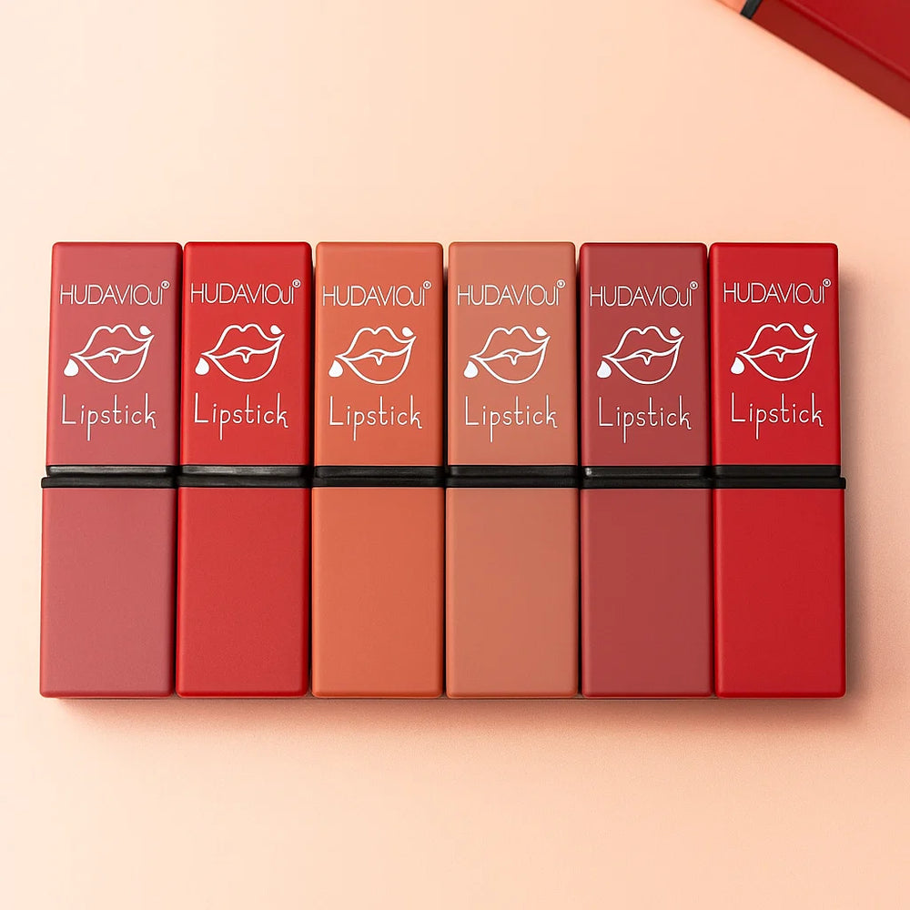 Matte Lipstick Set: The set includes six individual tubes of matte lipstick, each containing a different shade. Matte lipsticks have a flat, non-reflective finish and are known for their long-lasting wear.