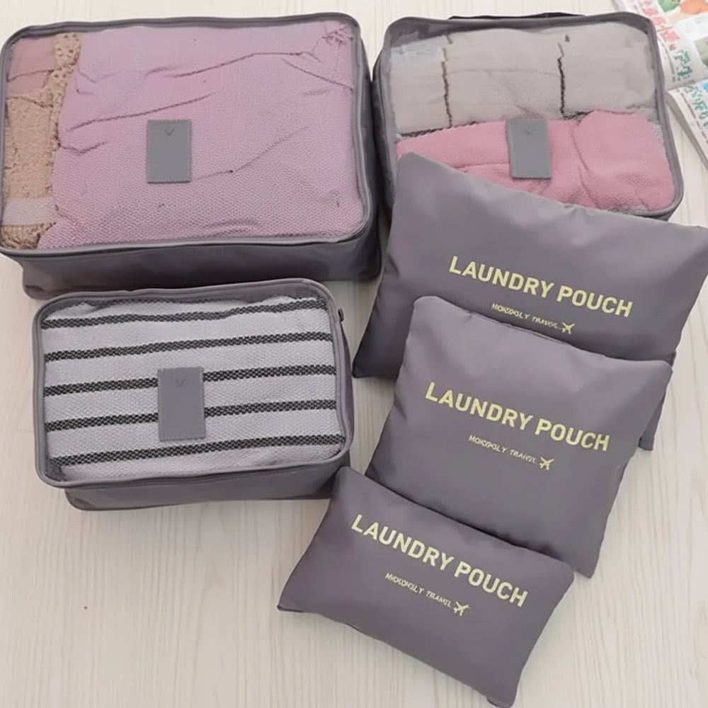 Turn your chaotic suitcase into an organized masterpiece with the 6-Piece Travel Storage Bag Set. Designed for the modern traveler, this "luggage tetris" system ensures that every inch of your suitcase is utilized while keeping your clean clothes, laundry, and toiletries completely separate.
