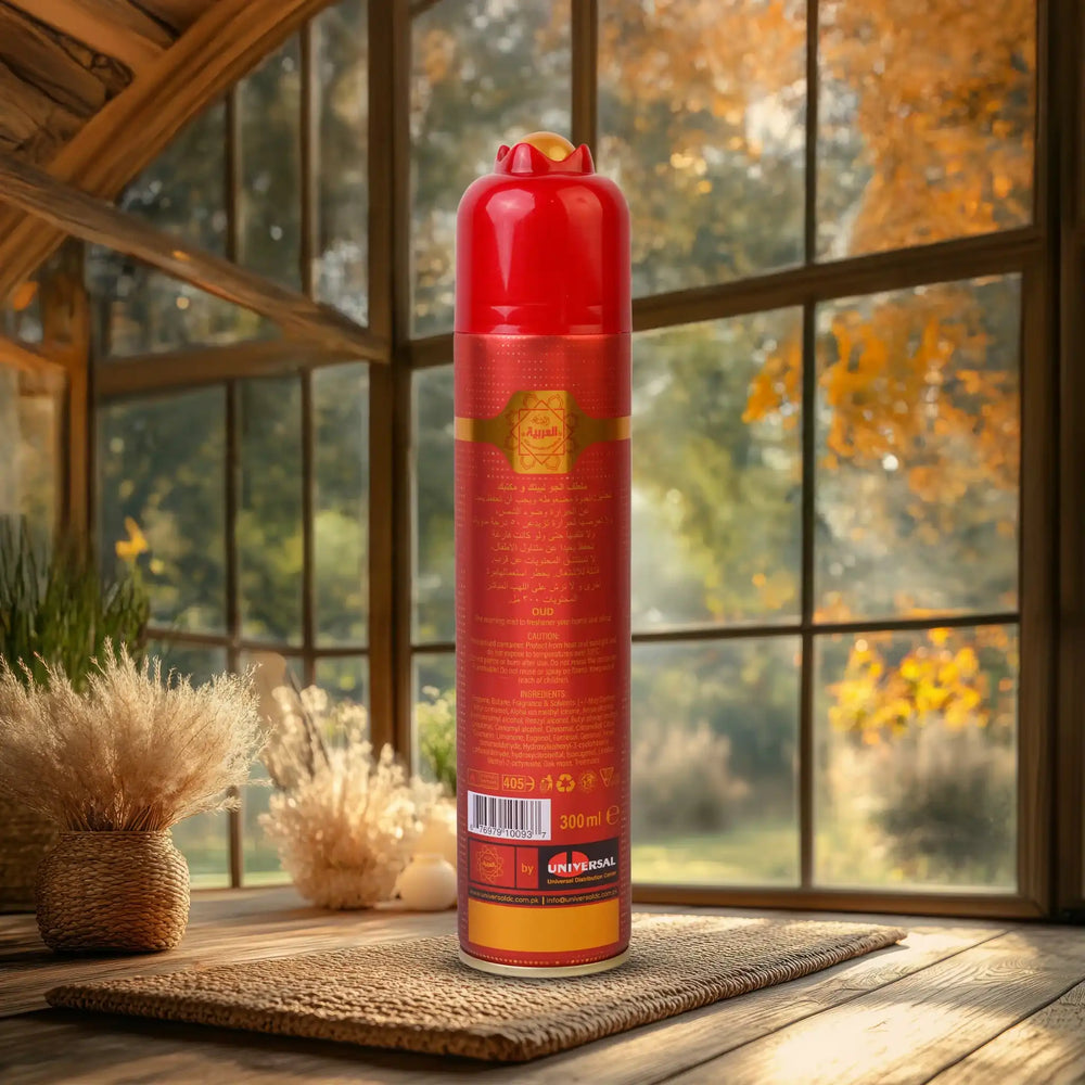 Transform your surroundings with the enchanting scent of Al Arabia Oud Air Freshener. Perfect for relaxation and unwinding after a long day, this oud air freshener is a must-have for anyone who appreciates the power of aromatherapy. Treat yourself to a sensory experience like no other with our 300ml air freshener today.