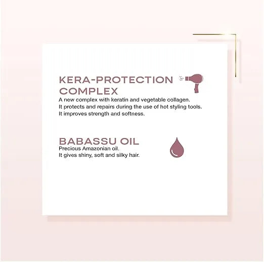 Keratin & Babassu Oil Formula: Strengthens and smooths the hair fiber for lasting shine and softness.