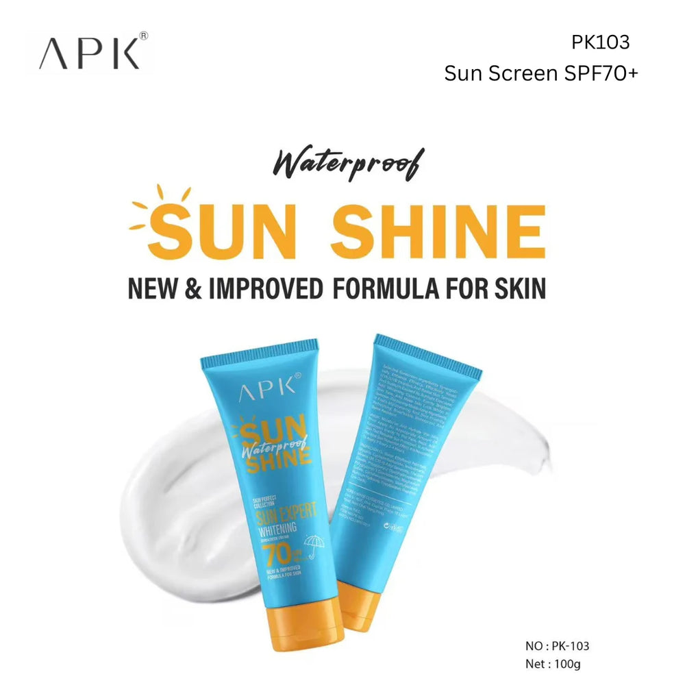 Protect your skin from harmful UV rays while achieving a brighter, more even complexion with APK Whitening Sunscreen Cream SPF 70+++. This high-performance sunscreen provides SPF 70+++ protection, offering broad-spectrum defense against both UVA and UVB rays, ensuring your skin is shielded from sunburn and premature aging. Infused with skin-brightening ingredients, it helps to reduce dark spots and uneven skin tone, leaving your skin with a luminous, radiant glow.
