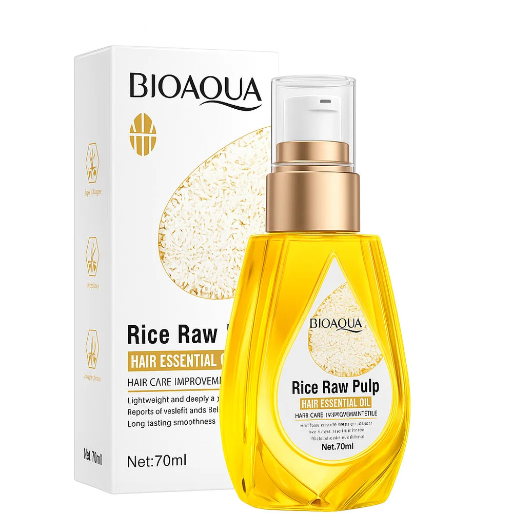 The BIOAQUA Rice Raw Pulp Hair Essential Oil is a lightweight, non-greasy hair serum designed to nourish, repair, and protect hair from daily damage. Enriched with rice pulp extract, this essential oil aims to restore shine, softness, and strength to dry, frizzy, or damaged hair.