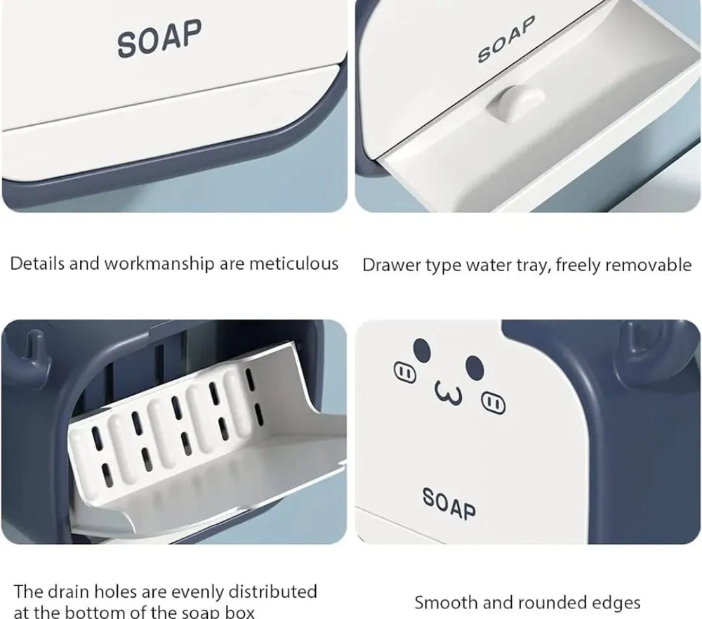 Cartoon Wall‑Mounted Soap Holder with Drain Drawer — Fun & Functional Bathroom Accessory