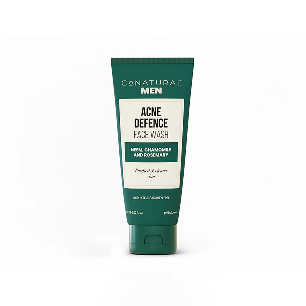 Acne Defence Face Wash, a dynamic blend designed to unveil purified and clearer skin. This potent formula merges the natural goodness of Neem, chamomile, and rosemary to combat oily and acne-prone skin effectively.