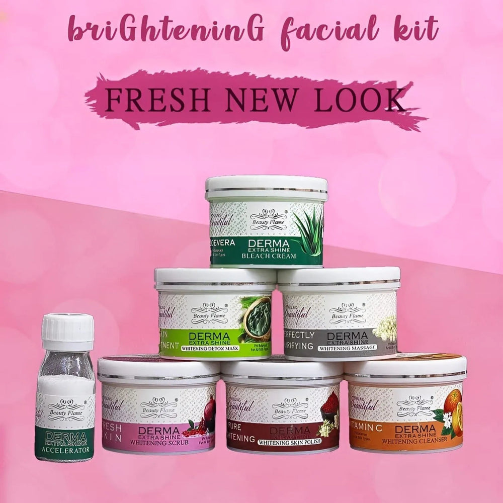 Reveal a radiant glow with the Derma Extra Beauty Flame Shine Brightening Facial Kit – Pack of 6. This complete facial care kit is enriched with brightening actives that help reduce dullness, even out skin tone, and restore natural luminosity. Each step is designed to cleanse, nourish, and rejuvenate your skin for salon-like results at home.