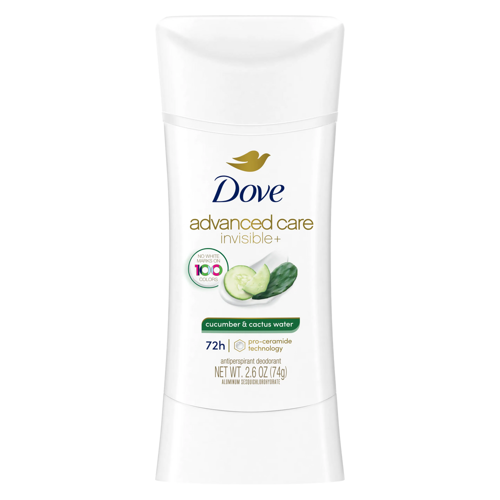 Dove Advanced Care Invisible Cucumber & Cactus Water Antiperspirant Stick 74g is specifically designed for individuals with sensitive skin, offering effective protection without irritation.