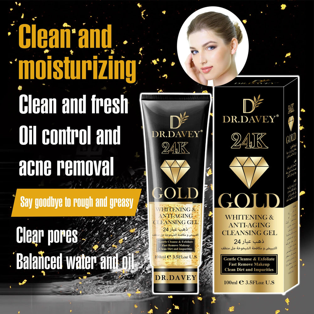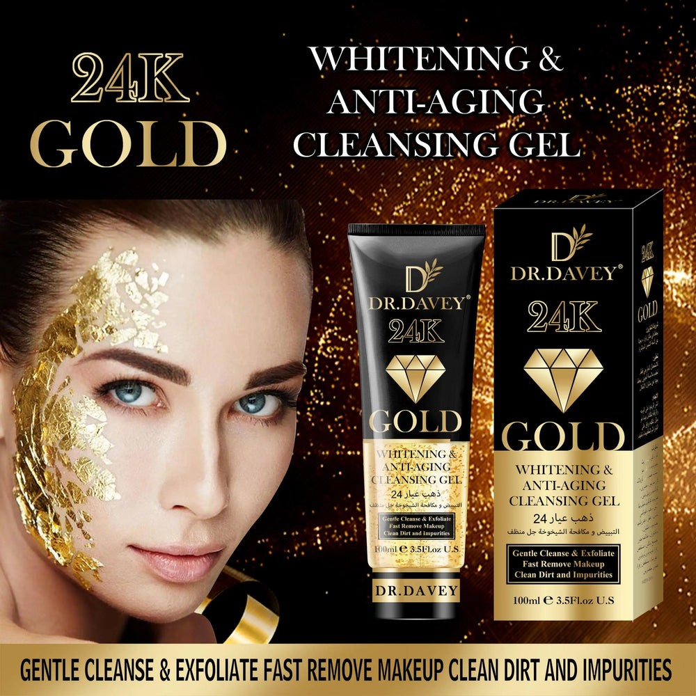 Discover luxury skincare with Dr. Davey 24K Gold Cleansing Gel, a powerful yet gentle facial cleanser enriched with real 24K gold particles. This premium gel deeply cleanses the skin, removes impurities, and helps brighten the complexion while maintaining moisture balance.