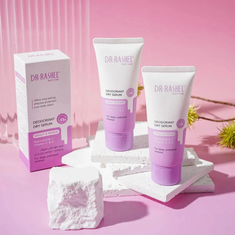 The DR.RASHEL Vitamin C & E Deodorant Dry Serum Correct Under Arm Dark Marks Cream is a specialized skincare solution designed to brighten and rejuvenate the underarm area. Infused with potent antioxidants, this serum targets dark spots and uneven skin tone while providing effective deodorizing benefits.