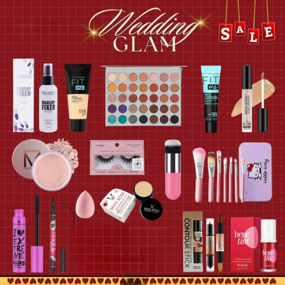 Step into your special day with confidence and radiance using the Exclusive Wedding Glam Budget Deal 01 — a complete, budget-friendly bridal makeup kit curated to help you achieve a stunning, long-lasting wedding look. Designed for brides, bridesmaids, or wedding guests, this all-in-one set includes premium-quality face, eye, and lip products that deliver flawless coverage, vibrant color, and a luminous glow.