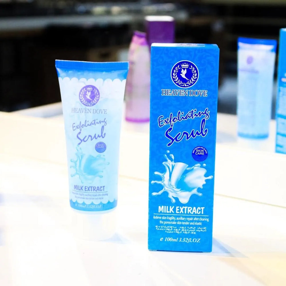 This 100ml Heaven Dove Exfoliating Natural scrub with milk Extract delicately exfoliates your skin for a soft and glowing complexion. Enriched with natural milk extract, it helps to nourish and hydrate your skin while gently removing dead skin cells. Experience the heavenly radiance of your skin with this scrub.