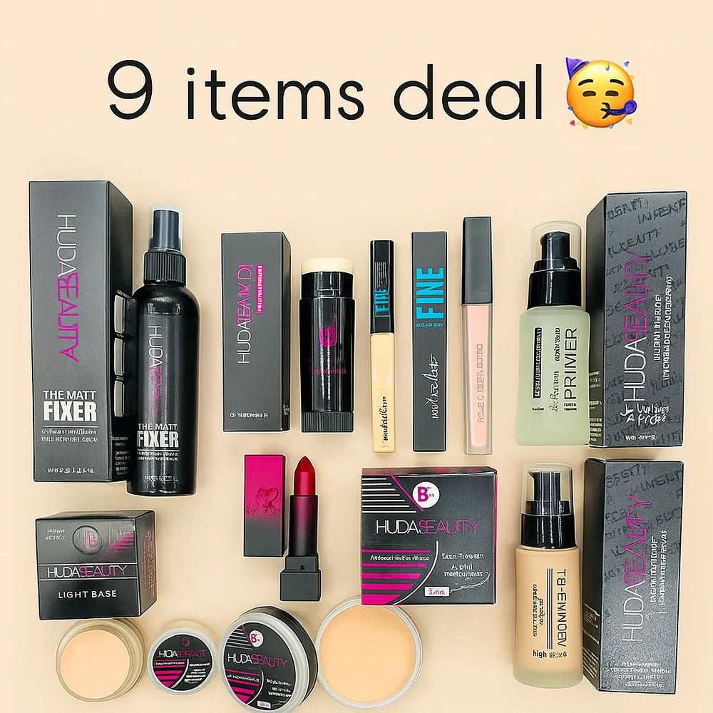 Get a flawless glam look with the Huda Beauty Complete Makeup Deal – 9 Pcs Set. This exclusive bundle brings together 9 essential makeup products, perfect for creating everyday natural looks or bold evening styles. From base to finishing touches, each item is designed to deliver long-lasting wear, rich pigmentation, and professional results.