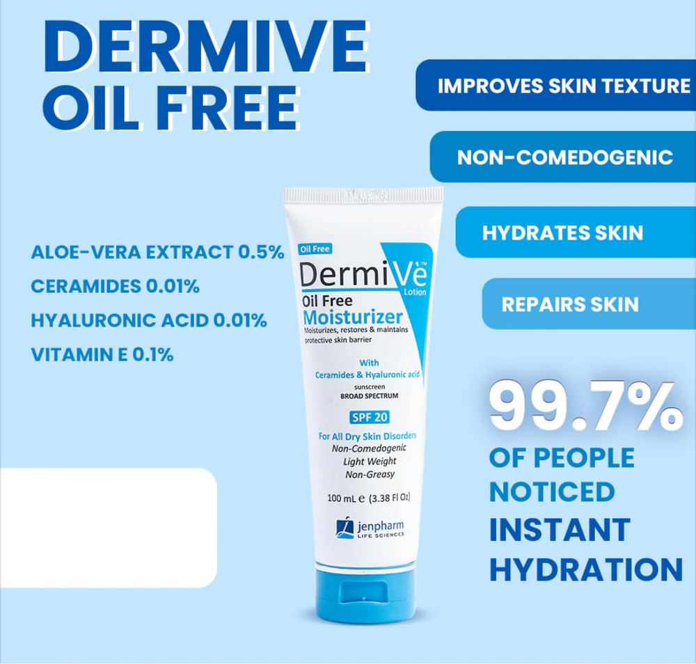 Infused with ceramides and hyaluronic acid, Dermive Oil free is the #1 best selling moisturizer in Pakistan.