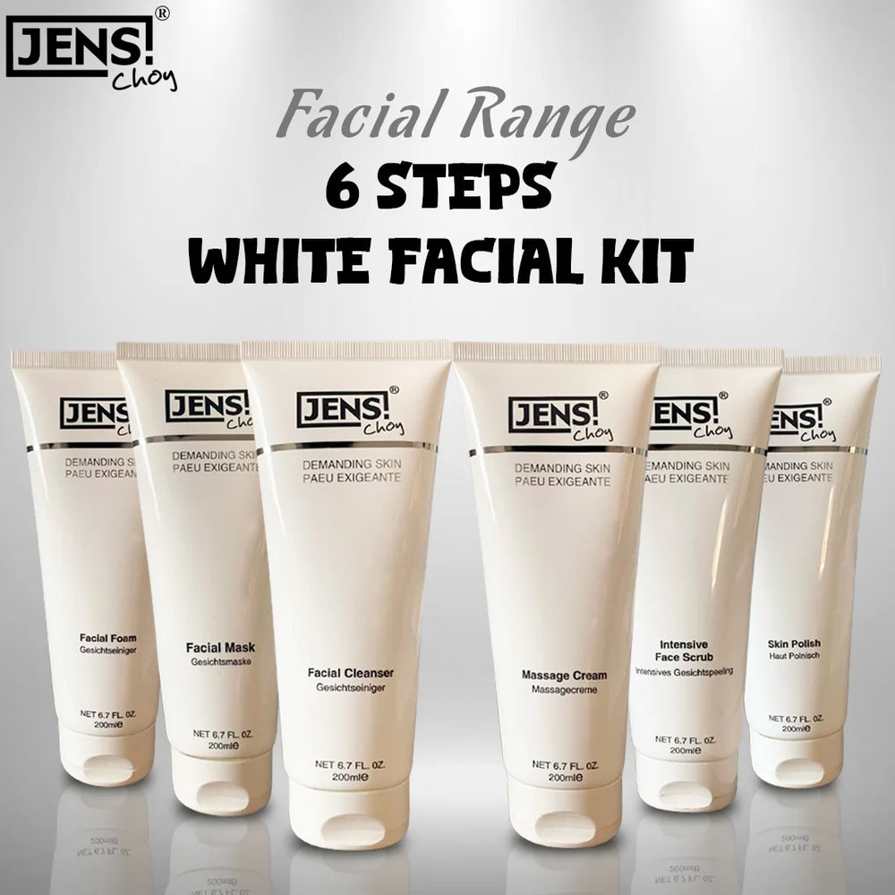 Boost your skin's radiance with the Jens Choy 6 Steps White Facial Kit. Each kit contains 200ml of specially formulated products to cleanse, exfoliate, and hydrate your skin. Say goodbye to dull, tired skin and hello to a brighter, rejuvenated complexion. Developed by industry experts, this facial kit is a must-have for your skincare routine.