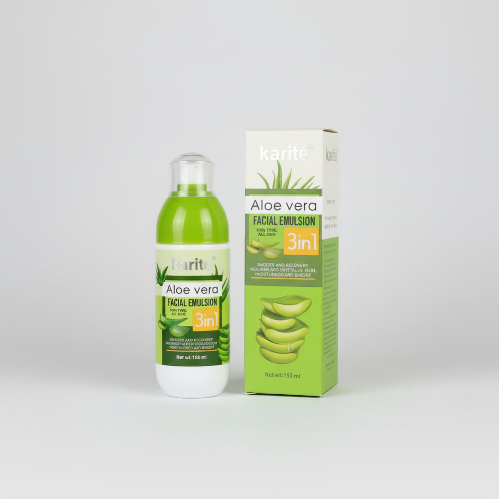 The Karite 3-in-1 Facial Emulsion is a lightweight, multi-purpose skincare product designed to hydrate, protect, and nourish all skin types. It combines the benefits of a moisturizer, toner, and serum in one easy step. Formulated to absorb quickly without leaving a greasy feel, this emulsion helps maintain skin’s natural moisture balance while improving smoothness and radiance.