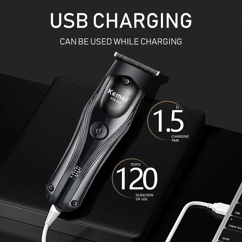 Kemei KM-593 Hair Clipper Professional Barber Hair Trimmer Turbo Speed Electric Hair Cutting Machine for Men LED Display Trimmer
