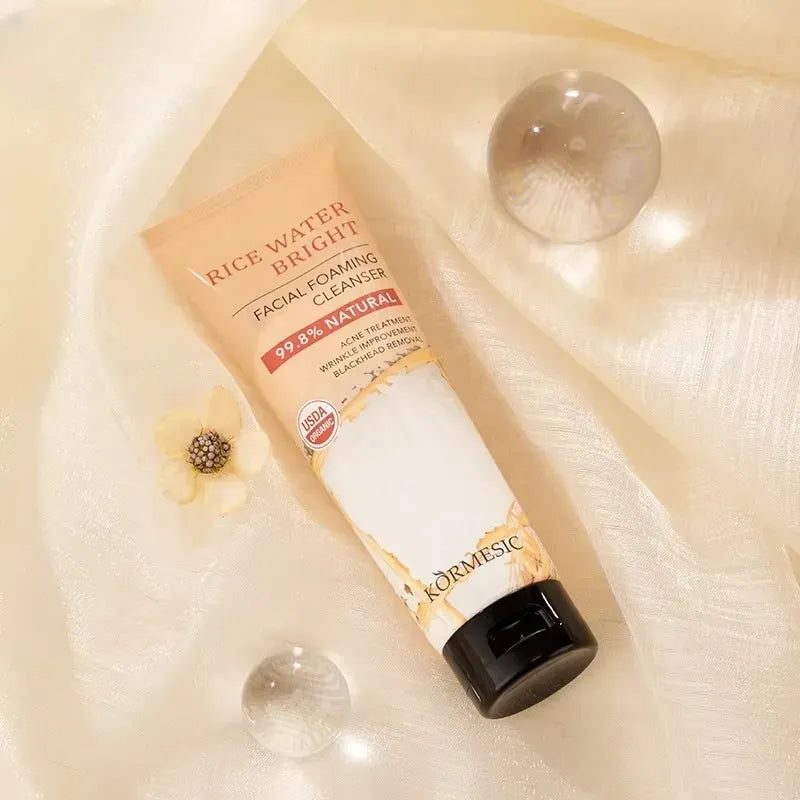 The KORMESIC Refreshing Rice Facial Cleanser (100g) is a gentle yet effective skincare solution designed to cleanse and rejuvenate your skin. Infused with the nourishing properties of black rice, this foaming cleanser aims to remove impurities while maintaining the skin's natural moisture balance.
