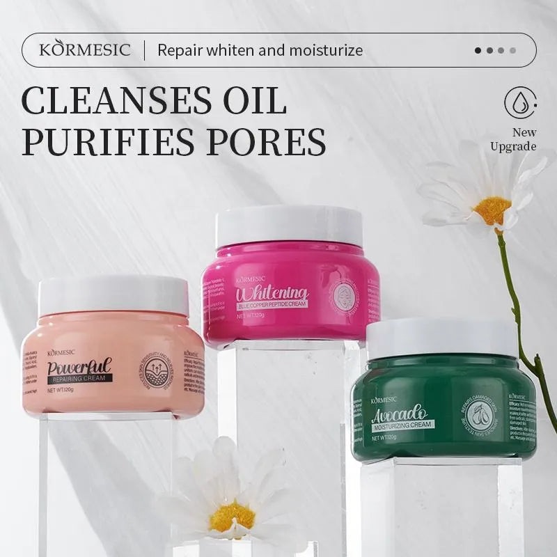 The KORMESIC Whitening Blue Copper Peptide Face Cream is an advanced, multi-action moisturizer designed to provide intensive anti-aging benefits while working to even out skin tone. This generous 120g jar features a rich, soothing formula centered around powerful skin-enhancing ingredients.
