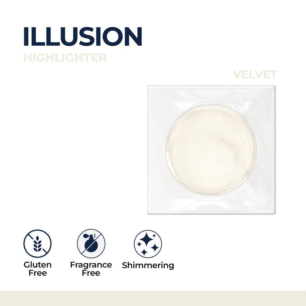 Illusion is a versatile, lightweight cream with a gloss finish. It gives cheekbones, lips, and other parts of the skin a beautiful velvety shine.