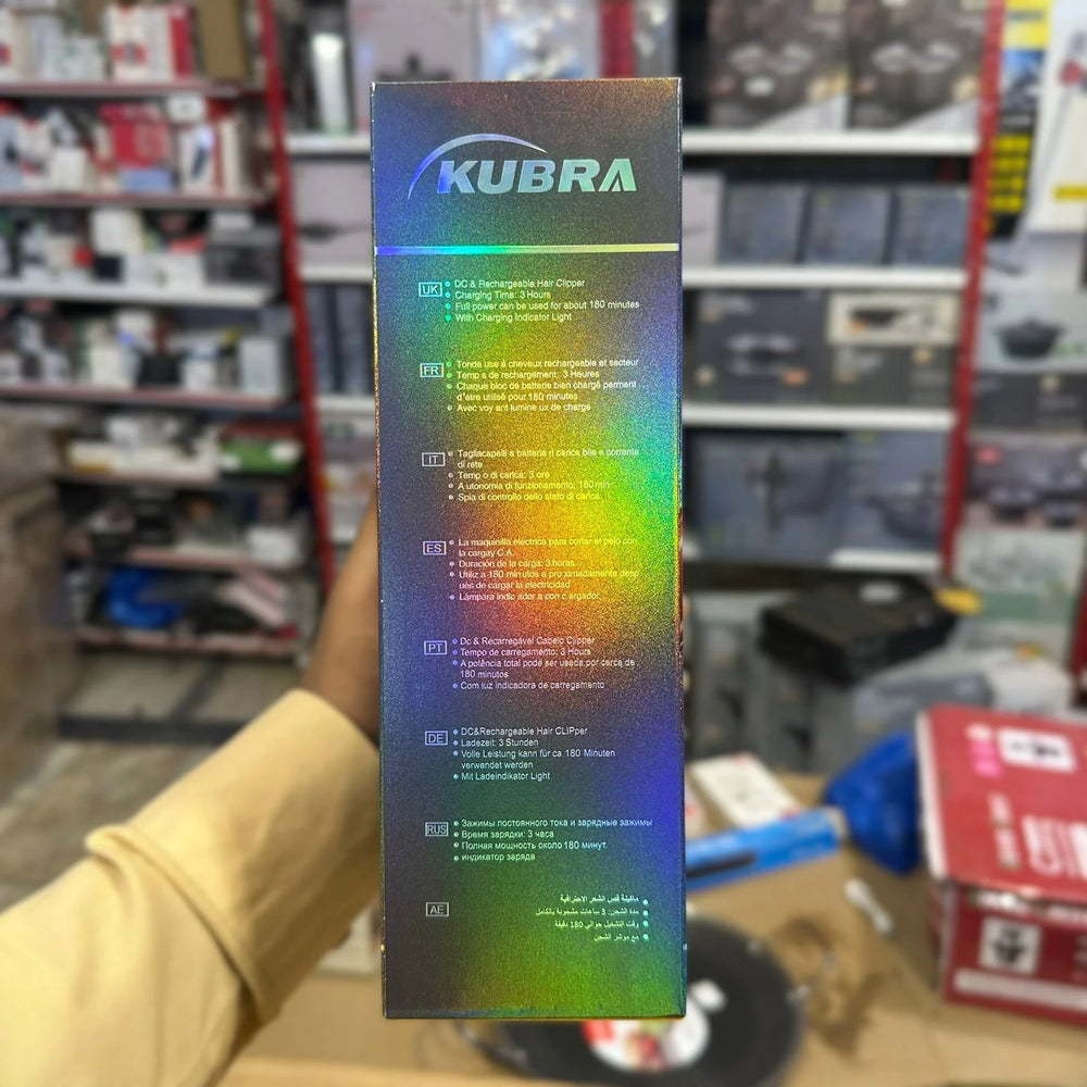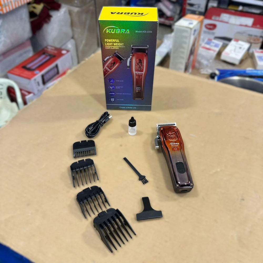 The Kubra Hair Clipper KB‑2254 is a versatile and reliable tool designed for both home and professional use. This rechargeable clipper features a sturdy DC motor and stainless steel “T” blade, offering smooth and precise cuts across all hair types. A full charge takes roughly three hours and delivers up to 180 minutes of cordless runtime, perfect for multiple grooming sessions without needing a recharge